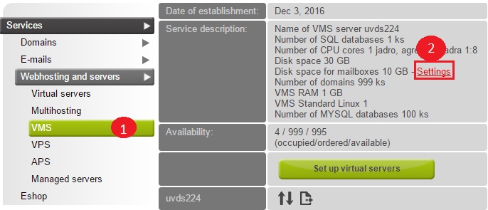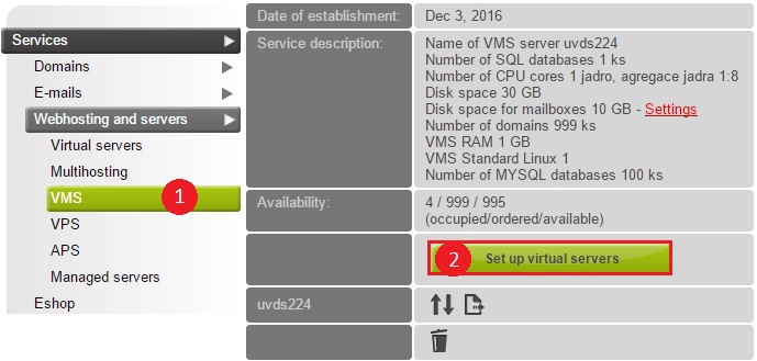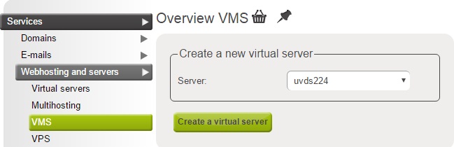 Al servidor VMS pot crear un nombre il·limitat de servidors virtuals. A cada un d'ells vostè assigna una quota de disc específica, la quota màxima depèn del paquet VMS triat.