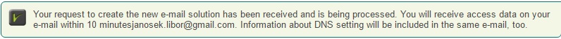 Nota: La quota de disc es pot ajustar seguint el nostre tutorial canvi de quota de disc. De la mateixa manera, pot modificar el límit per correus electrònics. L'espai per als serveis de correu electrònic es pot adquirir en qualsevol moment. La llista de preus és la mateixa per a cada variació de VMS: Llista de preus per incrementar l'e-mail a l'VMS. - Si ha seleccionat el nom de domini correcte i no excedeix el límit de quota, el servidor virtual començarà a crear-se. En uns 10 minuts rebrà la confirmació sobre la creació del servidor juntament amb els detalls d'inici de sessió.