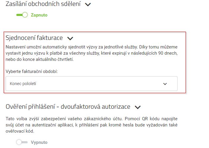 - Zajeďte níže až k položce sjednocení fakturace.