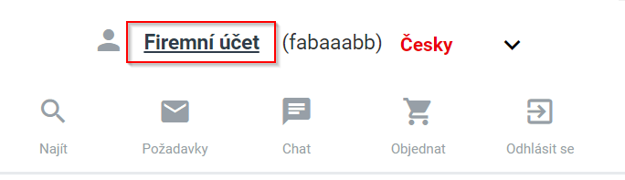 - Klikněte na jméno firmy/uživatele v pravém horním rohu.