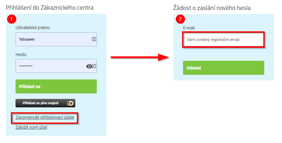 Přístupy ke svému Zákaznickému účtu si můžete nechat vygenerovat pomocí Žádosti o zaslání nového hesla. Do žádosti je nutné vyplnit konkrétní emailovou adresu, která je u uživatelského účtu vyplněná.
