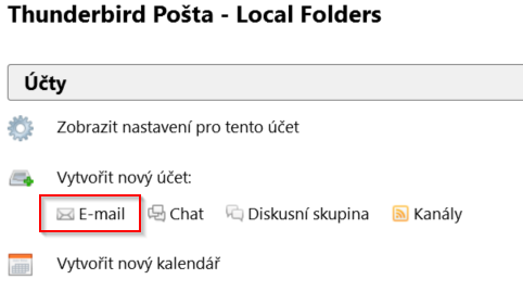 - Starten Sie Mozilla Thunderbird. Bei den lokalen Ordnern klicken im Abschnitt Konten auf Neues Konto erstellen und wählen Sie E-mail.