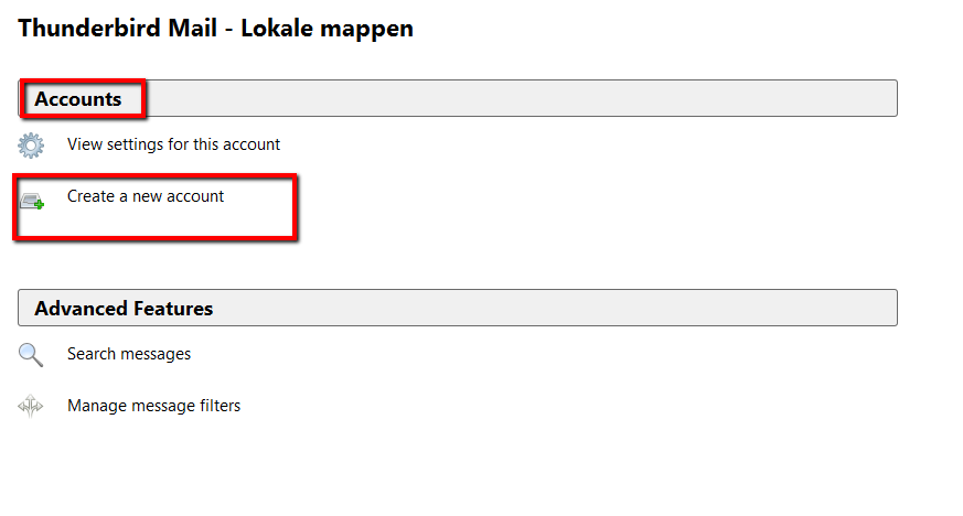 - After launching the program choose the Accounts category between the Create new account op: E-mail.