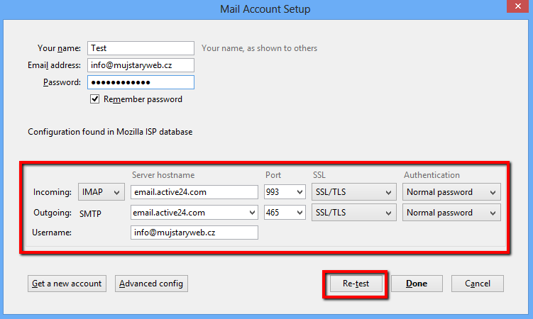 - Login will fail for the first time, then you just have to fill out e-mail servers for incoming and outgoing mail - email.active24.com