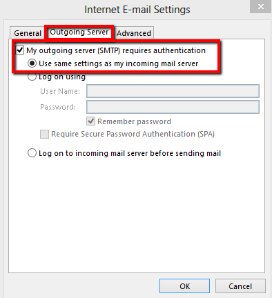 - In More settings use in the Server bookmark for outgoing server the same settings as for incoming.