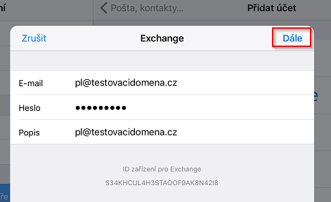 - Voer vervolgens uw e-mailadres, wachtwoord en beschrijving in (naam om weer te geven in uw iOS-e-mail client).