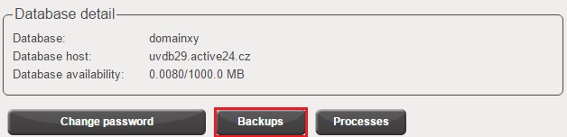 - Bij dienst informatie scroll naar Database MySQL en klik op de button Instellen en daarna op; Backups
