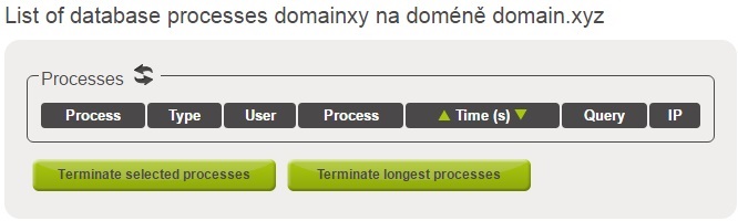 De langstdurenden processen van het gebruik van de database zijn te vinden in het controlepaneel. In een evaluatie van langdurige vragen kunt u de geselecteerde processen onmiddellijk stopzetten.